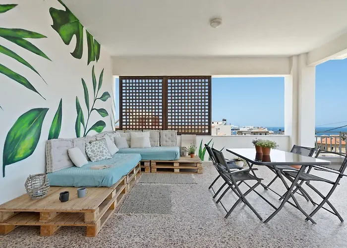 Strand von Nea Chora ist circa 25 Minuten zu Fuß von dem 100 m^2 großen Sea,City & Mountain View Apartment entfernt, während sich Maridaki in der Nähe befindet. Den Gästen stehen Autos zur Verfügung.
